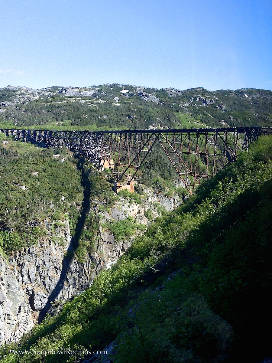 After our water excursion at the last port, we decided to stay on land and take a death-defying train ride on the historic White Pass Railway, climbing 2,865 feet to the summit along a narrow track overlooking the valleys below.