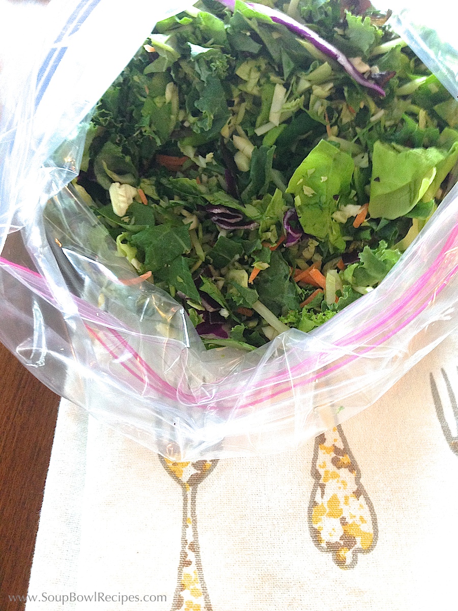 Either dress salad and serve immediately, or store in a resealable freezer bag in the refrigerator for 3-5 days.