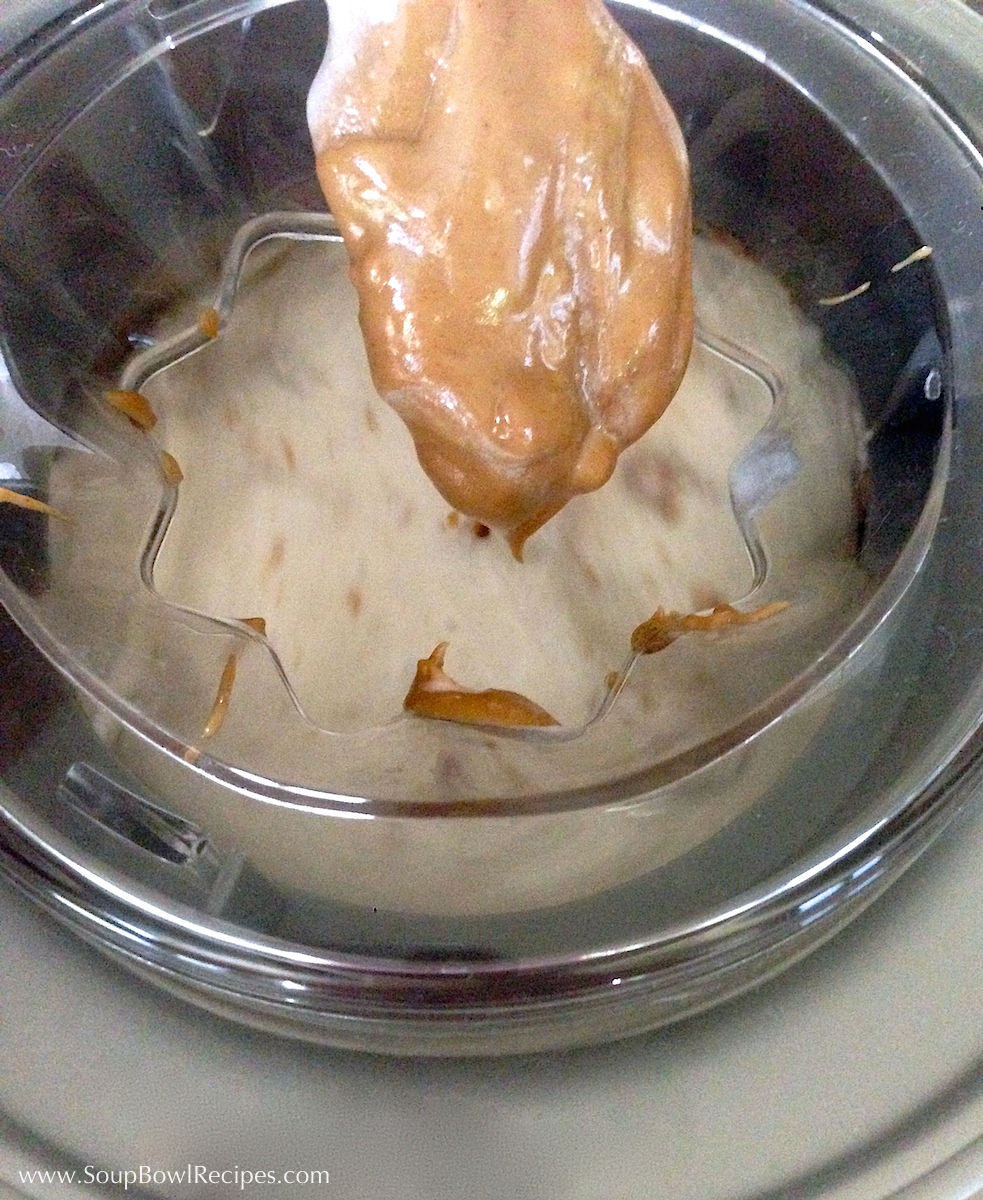 While the ice cream mixture is thickening, soften peanut butter in the microwave for 30 seconds.