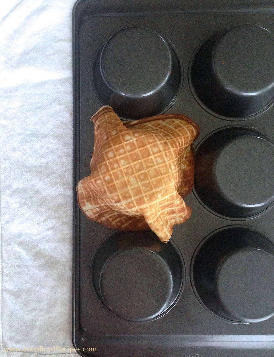 To make waffle bowls: Follow cooking instructions above, then press hot waffles over the bottom of a large muffin tin cup and hold there until waffle begins to cool and harden.