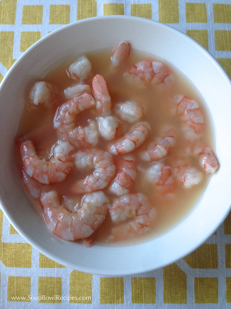 Pour shrimp and juice through a collander to strain.