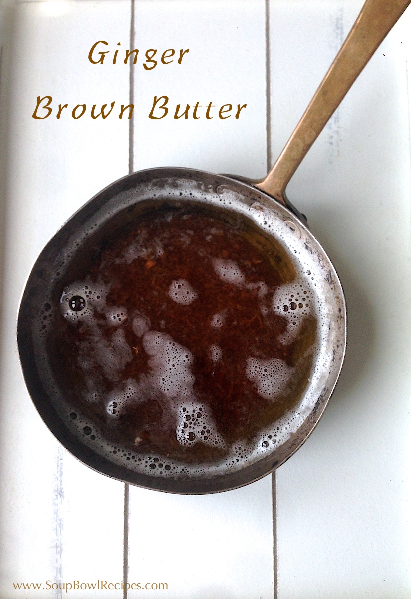 In a small saucepan set over medium heat, melt butter and grated fresh ginger. As the butter melts it will bubble and become foamy, this is fine, just be sure to stir the butter so that it doesn’t burn. Continue cooking and stirring until butter is a nice golden brown, remove from heat and allow to cool slightly.