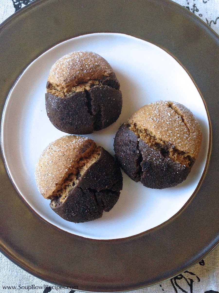 Then…I had to take a couple more days off to rest and recover from my busy two weeks, but now I’m back! And I have something extra special for you by way of apology for my long absence. Gingersnaps! But not just any gingersnaps, I cooked up two varieties of gingersnaps for you guys: regular old gingery gingersnaps, and chocolate gingersnaps — which are ohsogood! (On a side note, that’s probably the most I’ve ever used the word gingersnaps in a single sentence.) Anyway, I realize that it’s still October (and not December like the big department stores would like you to believe with their Christmas decorations already out), and I know that gingersnaps are kind of a holiday cookie, but you know what? I don’t care. I love them! They’re spicy, and sugary, and pretty much taste good any time of year, like…Halloween. Oh! and get this, ginger root has a long history as a natural cure for nausea, which worked out perfectly for us because these cookies were just about the only thing my family could keep down while we were battling the stomach flu (see excuse #1). So whether you’re in the pre-holiday spirit or just looking for a delicious alternative to Pepto Bismol, these cookies are going to make you (and your stomach) happy!