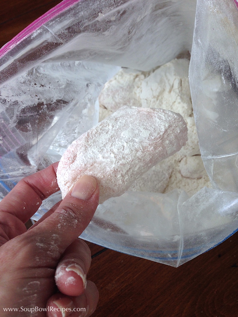 Spread flour-coated chicken pieces evenly on oiled foil-lined baking pans, being careful not crowd them. Bake for 20 minutes, then remove pans from oven and turn the wings over, then cook another 20 minutes, or until the wings and drumettes are browned and cooked through.
