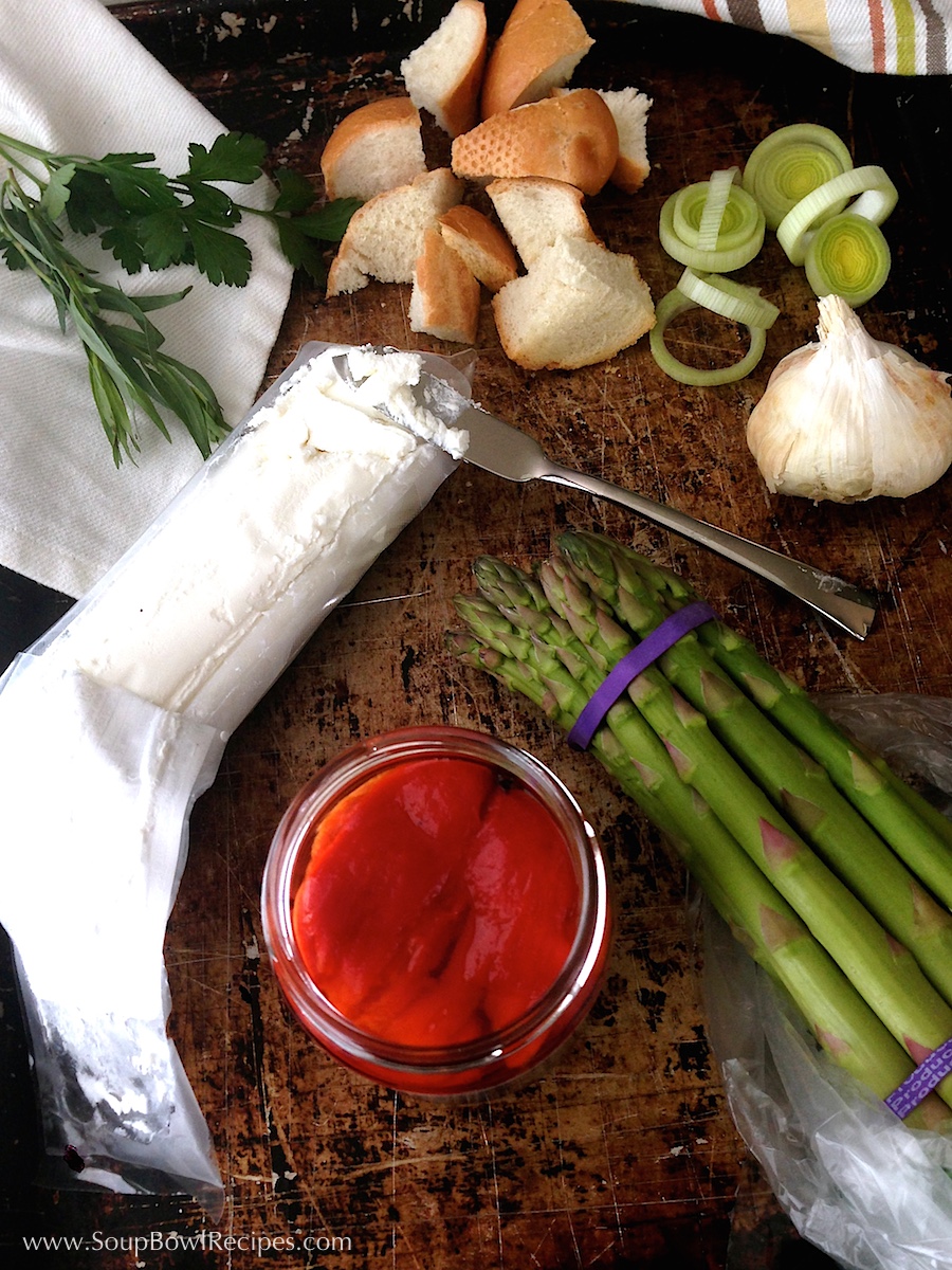 Roasted Red Pepper, Asparagus, & Goat Cheese Bread Pudding