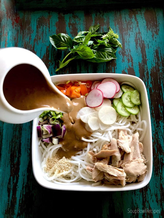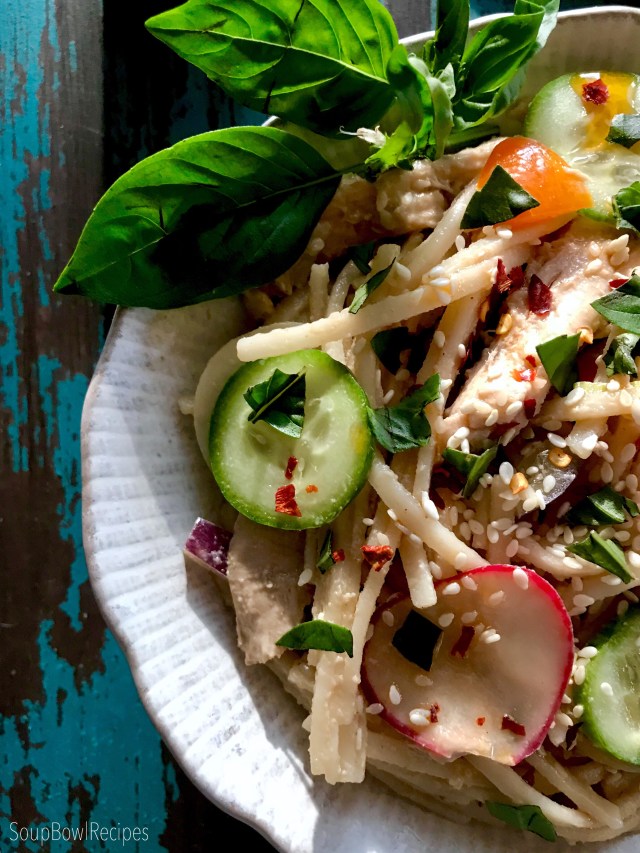 This recipe is actually a riff on one I posted back in 2014, but it’s changed a little over the years (haven’t we all!), and I’d like say, matured a bit? In this version, I’ve swapped out the heavy buckwheat noodles for a lighter rice noodle, added some umami-packed flavors, and included shredded chicken, graduating this from a side dish to a main course. And as I mentioned above, this recipe is designed to be tweaked to your taste, so if you hate radishes, leave ’em out. Chicken not your thing? Throw in shrimp, tofu, or shredded beef instead. Also, there are a few specialty items that I’ve indicated with an asterisk (*), and, whenever possible, I’ve suggested a more mainstream pantry item for substitution. The goal here is not to think too hard about this dish, because really, our brains are already mushy enough from the heat.