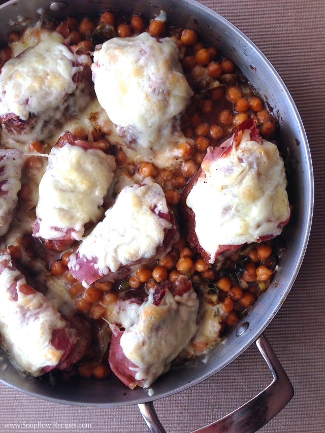 Chickpeas (a.k.a. garbanzo beans) can be a bit bland on their own, but when baked under tenderloins of sizzling, salty pork, they just explode with flavor. This dish is not only delicious and easy to make, but it’s elegant looking as well, which means you can prepare it for your family one night after work, or save it for the next time you have company. Either way, you’ll look like a rockstar in the kitchen! The original recipe called for using dry chickpeas, soaking them overnight, then cooking them on the stovetop for an hour prior to making the rest of the meal. That method sounded delicious, but, really?! It’s more time than I want to spend on a weeknight dinner (also, my local grocery store doesn’t carry dry chickpeas), so I altered the recipe to use canned chickpeas instead. With that being said, anyone who would like to try the long version gets extra credit – and you can find the recipe here. (Recipe slightly adapted from Fine Cooking.)